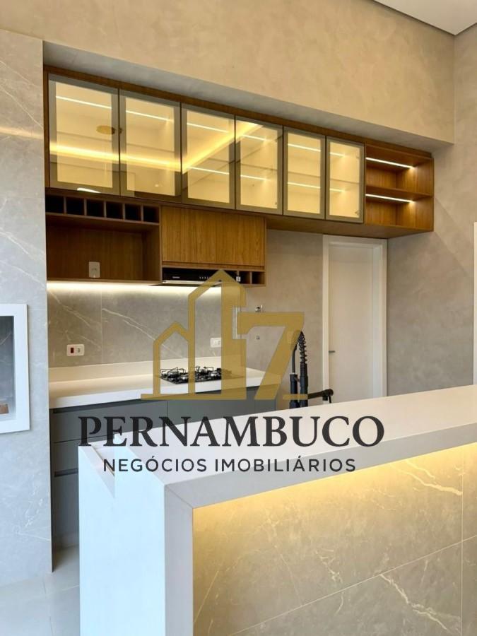 - Área gourmet planejada, com cooktop, coifa, churrasqueira cristaleira e detalhes em LED