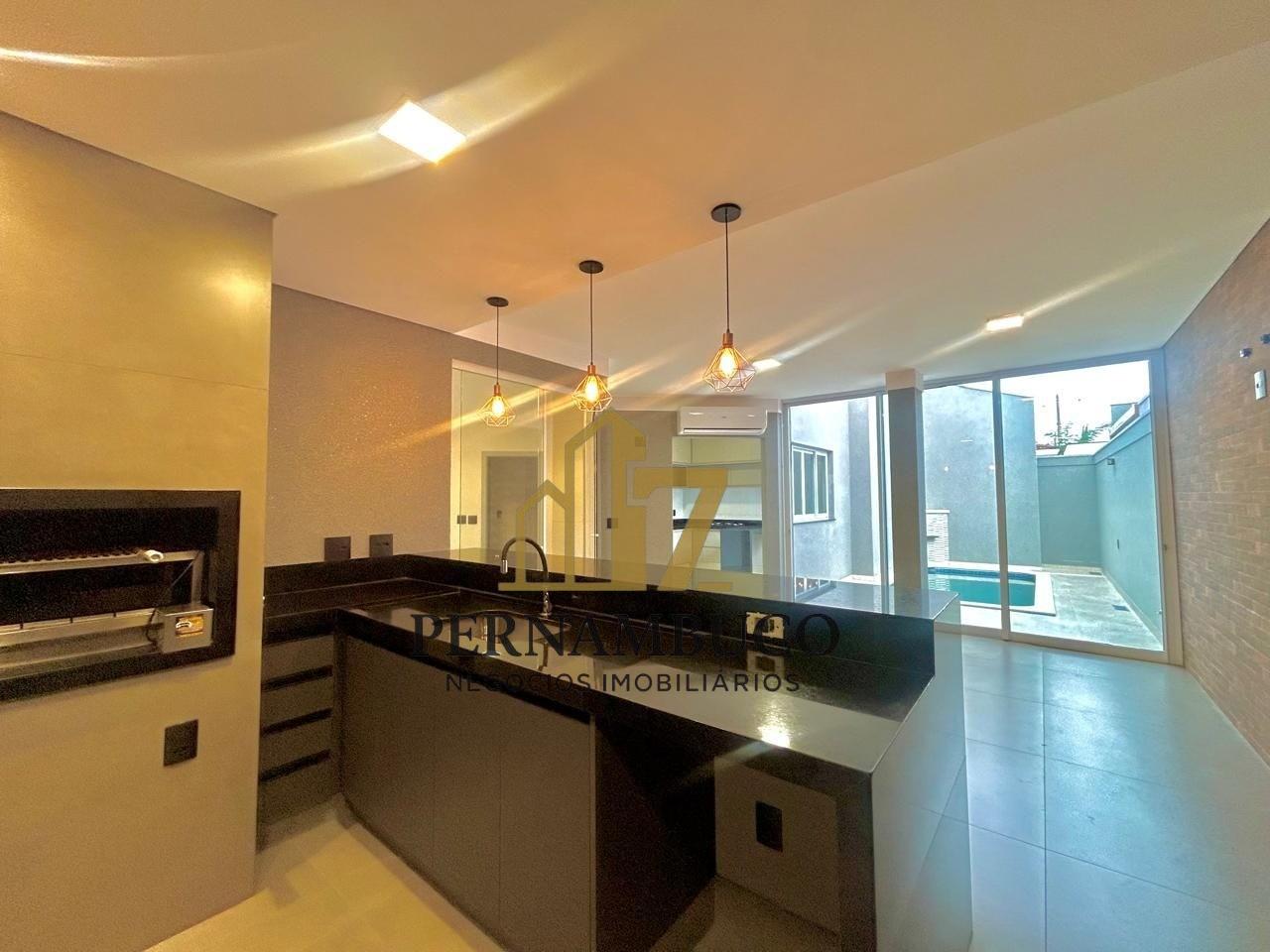 - Área gourmet planejada, com churrasqueira, balcão de apoio e pendentes luminosos